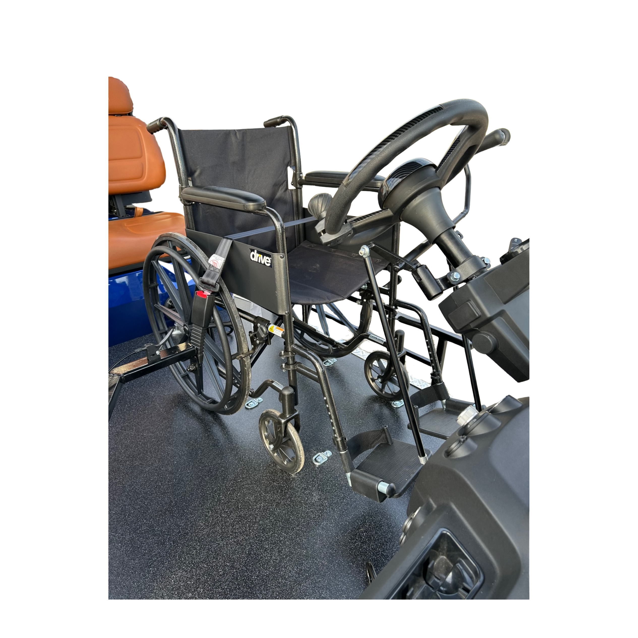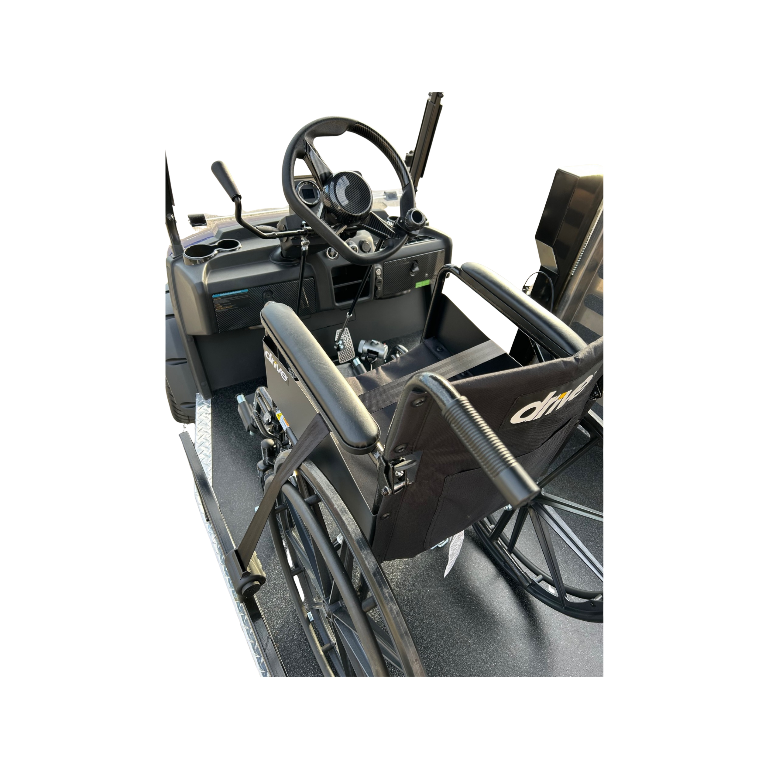 The RUNABOUT is designed for total independence. Built on DACH Falcon and EZGO platforms, it allows wheelchair users to drive comfortably and safely—without transfers.